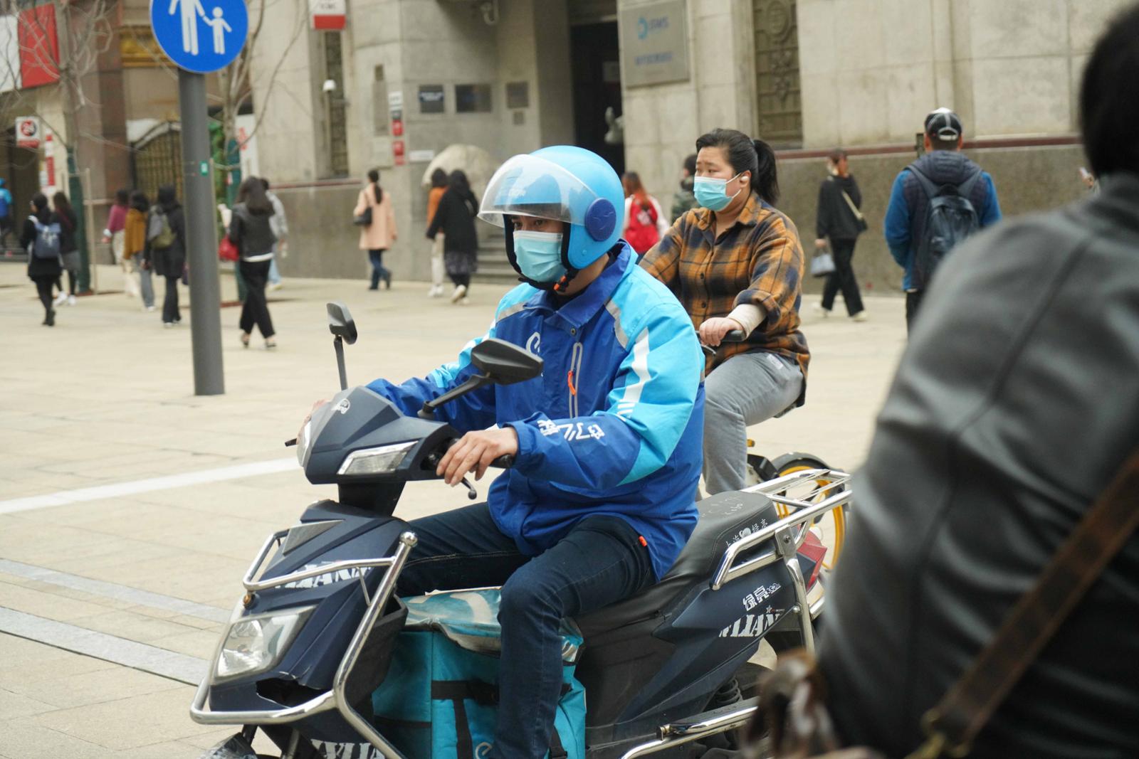 图为骑手正在送外卖。劳动报记者 贡俊祺摄影
