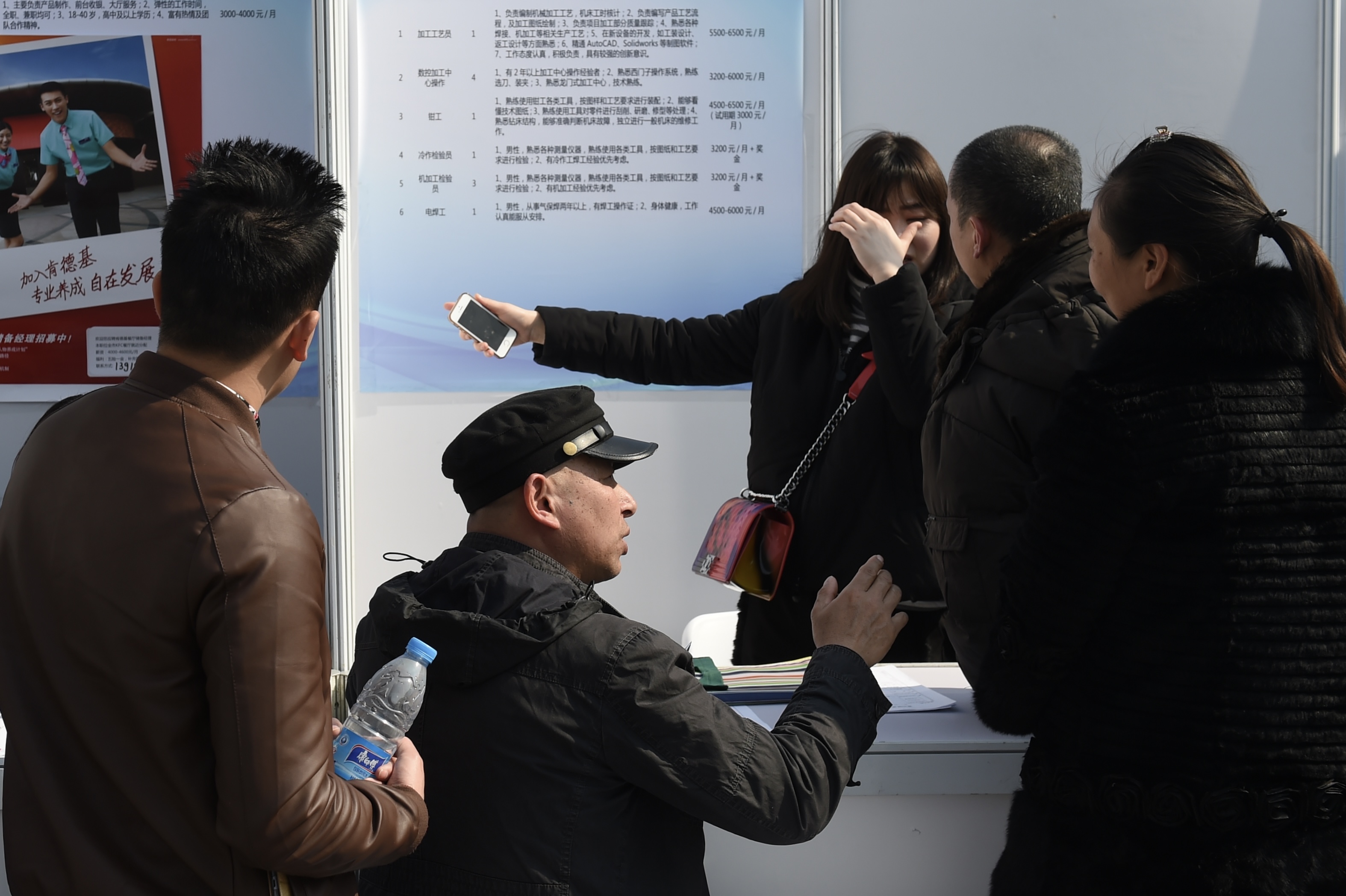 图为在招聘会中的求职者。劳动报记者 贡俊祺摄影