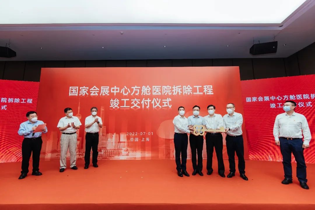 7月1日,上海国家会展中心方舱医院拆除工程竣工交付仪式在沪举行。上海市人大常委会副主任、市总工会主席莫负春,市政府参事黄融出席仪式并讲话,市建设交通工作党委副书记、市住房城乡建设管理委主任姚凯主持仪式。中建八局党委书记、董事长李永明作交流发言。局党委副书记、工会主席于金伟参加仪式。