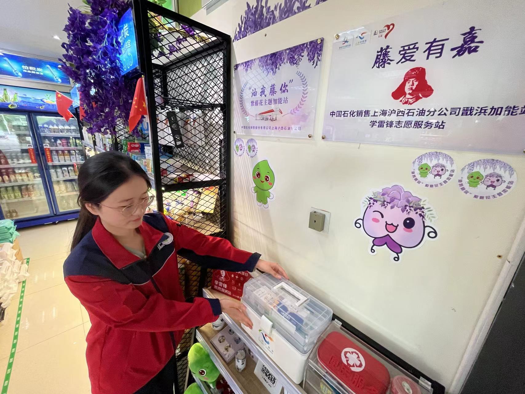除了引进嘉定紫藤元素外,戬浜加油站还积极响应地方深化全国文明城区创建工作,与嘉定区精神文明建设委员会办公室一起重点打造“‘藤’爱有嘉”雷锋服务标杆站,建强志愿者服务群众的阵地。近年来,上海石油不断推进司机之家、爱心驿站建设,在已建成的爱心驿站中,为市民提供应急药物、食品微波加热、简易维修工具等多项便民服务,成为驾驶员、户外就业者的休憩港湾。