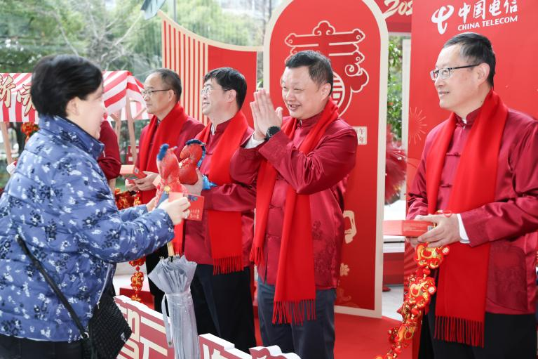 2月24日,正月初八,丙午马年开工首日,上海电信在信息大楼举行新春开工仪式。公司领导班子成员身着唐装,在大堂为返岗员工送上小马玩偶、定胜糕、吉祥挂件和特色茶点等开工好礼,以满满仪式感为新一年鼓劲提气。