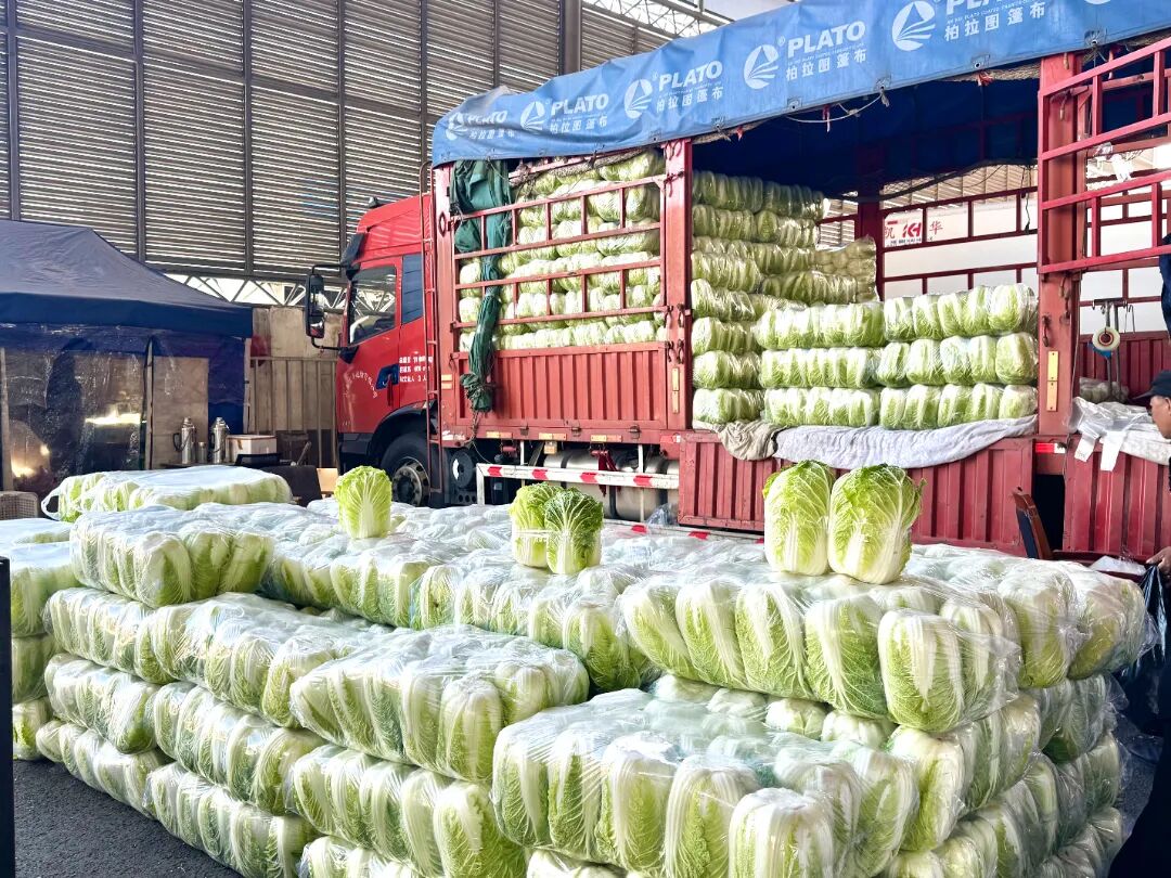 西郊江桥公司借助客户微信群提前发布寒潮预警,提示客商加强安全防范,确保市场供应稳定有序。同时,强化市场、商户与产区之间的三方协作,蔬菜交易大数据工作室详细了解客商到货情况,密切关注供应动态与价格走势,针对性推进货源调配与价格预警,切实保障“基地有菜、路上有菜、市场有菜、终端有菜”。目前,市场冬季蔬菜主要供应产区集中在山东、江苏、云南、安徽等省份,货源到场较为充足,近期市场日均蔬菜供应量约为6000吨,价格基本保持平稳。