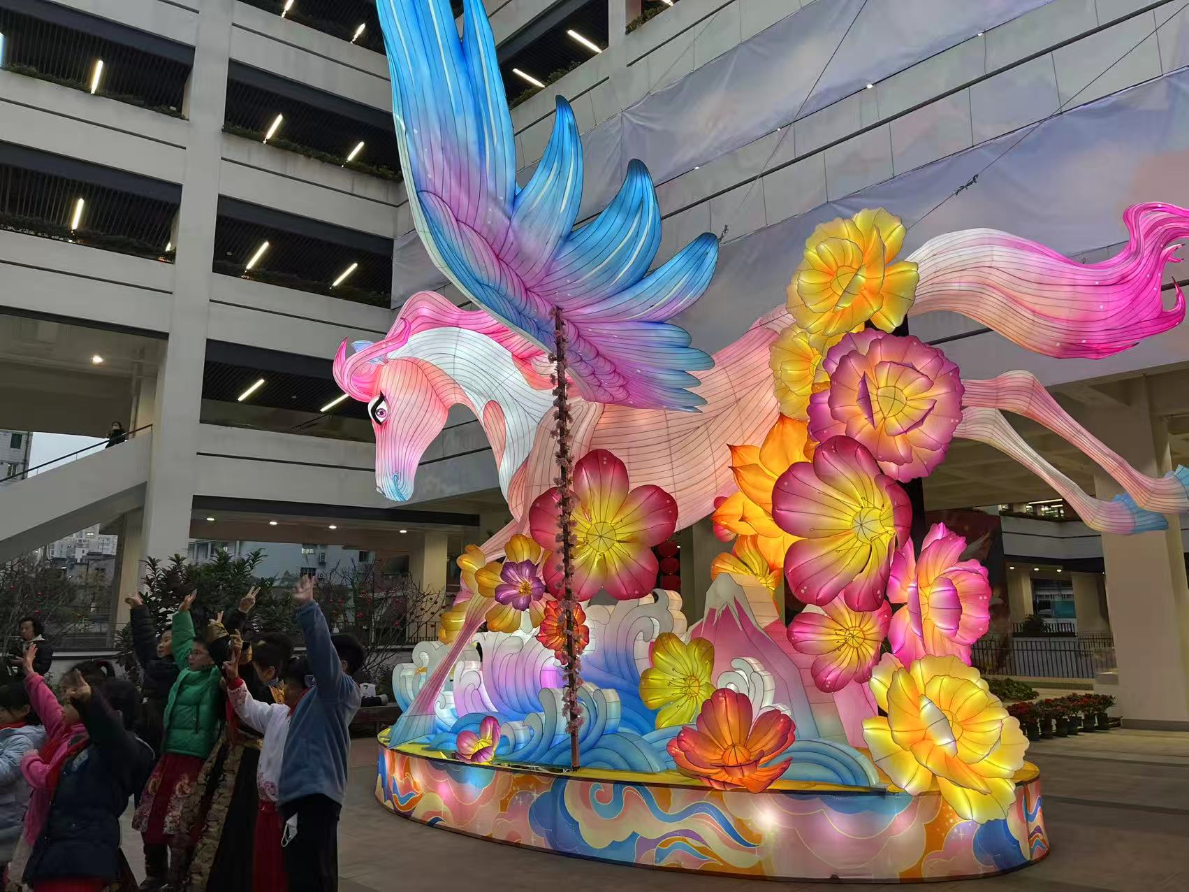 作为活动的压轴环节,“骏影流光·共赏光影奇境”将师生带往豫园灯会的璀璨世界。校园内精心布置了灯彩展区,师生漫步于流光溢彩的灯海之间,欣赏以“山海奇境”为主题的传统灯组,沉浸式体验国家级非物质文化遗产的独特魅力。