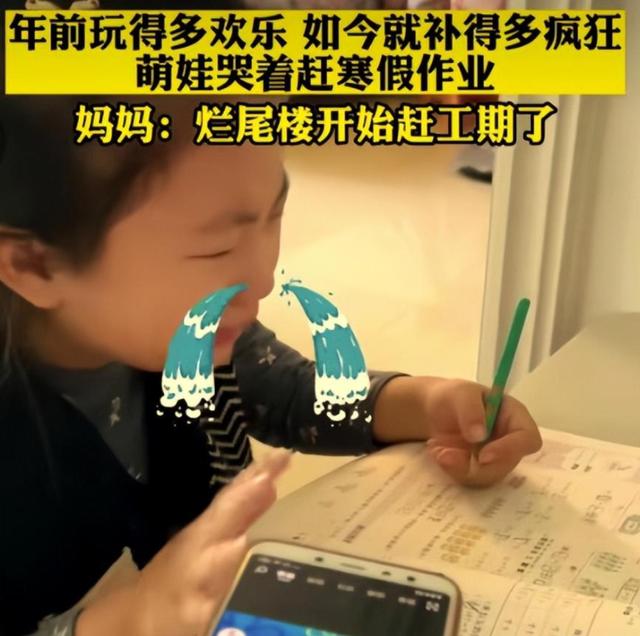 “工程不但烂尾,有人连图纸都丢了!”一些家长在网上调侃,当孩子想起来写作业时,试卷找不到了,电子文档过期了。“年前说要放松,说还早还早不着急,过年期间每天玩得不亦乐乎,眼瞅着开学了,才想起了好多作业没写,开始哭了。”家长杨女士告诉记者,这几天女儿哪里也没去玩,一直在补作业。