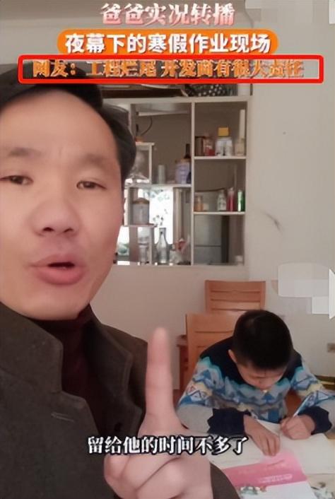 这几天,网上很多家长秀出了“夜幕下的寒假作业现场”,展现孩子们补作业名场面。比如,一位爸爸变身世界杯解说员,对着镜头实况转播儿子写作业现场,他表示因为工期的一再拖延,工程烂尾的结局早已注定,马上就要开学交作业了,留给儿子的时间不多了……