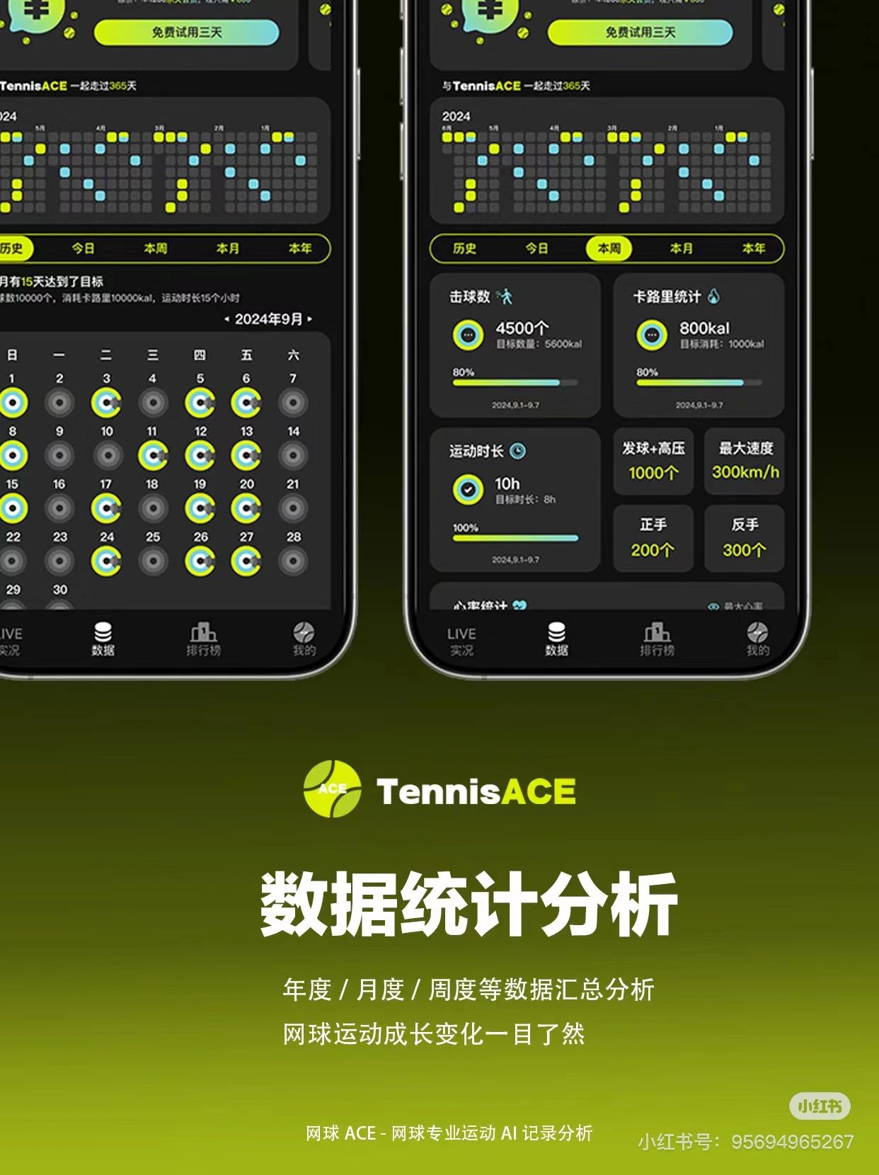 不仅仅是公共的体育设施插上了智慧的翅膀,个人化、个性化的健身活动也在加紧拥抱AI。过去的2024年,在郑钦文奥运夺金,张之臻和商峻程等网球明星优异表现的背景下,网球这种挥拍类运动,竟然也可以像跑步运动一样捕捉个人运动轨迹了。