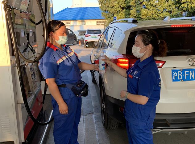 由于加油站无法停止工作,职工工作期间必须佩戴口罩,该公司下属上海沪东石油分公司现场供应冰镇盐汽水、盐水棒冰及其他饮料,以确保加油工补充水分和电解质;藿香正气水,龙虎人丹等夏季防暑药品职工随时可以取用。沪东石油分公司还组织党员和团员青年利用业余时间,进加油站临时值勤,减少一线职工的工作时间。各加油站在优化排班、增加换休频次的同时,也推出了带有自身特点的举措。南汇加油中心考虑到一线职工加油期间全程佩戴口罩,采购了挂脖小风扇,给职工在炎热天气里送上一缕清凉。