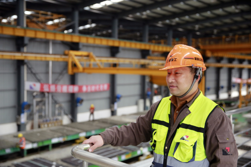 作为材料公司第一构件厂PC车间1号线的值班长,这些年来,王明牛风雨无阻,每天总第一个来到车间,如“老黄牛”般往来“耕作”于百米长的轨道内,角角落落检查到位,确保生产万无一失。