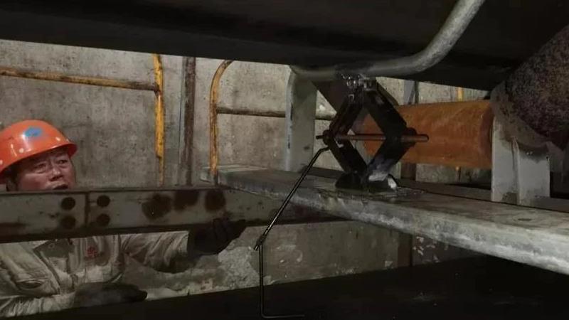 据了解,带式输送机适用性强,适宜远距离运输,配置托辊多,作为物料转运的主要设备,承担着全部煤炭的运输任务。但因作业环境复杂潮湿、使用频繁,托辊经常出现故障,需要及时更换检修。其中最难处理的是上“U型”托辊组中的中间托辊。由于作业空间狭小,从机架到皮带最低处仅有20厘米左右的距离,以往检修每次都需5至6人协作,用2至3个撬棒撬起皮带,人再侧身进去作业,存在用时长、用工多、效率低、安全性差等问题,亟需改进检修方法和工具。