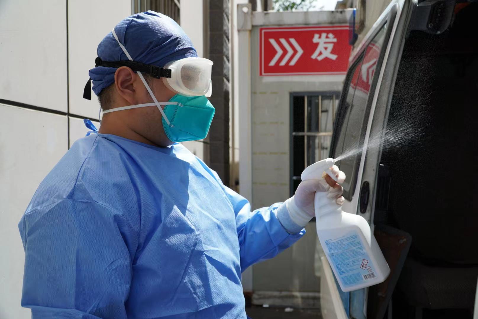 消毒时间不可压缩,工作量翻了个倍。“这种时候根本来不及休息,只能增加一辆救护车,两辆车交替地使用,车休人不休。”