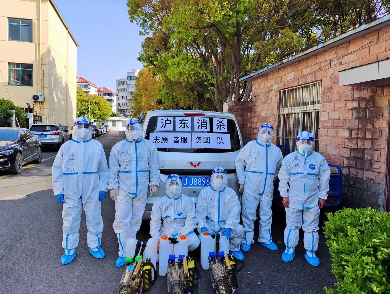 在街道的沟通协调下,徐元平招募了一支由上海骋顺楼宇智能科技有限公司和上海普佑建筑工程有限公司的职工组建而成的消杀志愿者队伍。在得知消杀力量不足时,共产党员、退役军人、上海通平汽车装潢有限公司负责人邢爱国带领员工也主动加入到志愿者行列进行防疫消杀,“沪东防疫消杀志愿者服务队”就此成团。