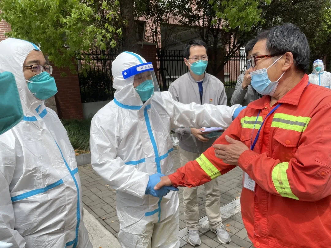 虹口城发公司第一批9名职工自4月8日晚入住方舱医院后,了解到方舱内人手紧缺,在城发公司党委的倡议和各下属党支部的积极动员下,9名工人师傅迅速集结,第一时间成立起一支志愿服务队,在方舱医院临时党支部的协调指导下,开展起志愿服务工作。服务队的首批带队队长樊昌庆在出院时,紧紧握住前来迎接他们的公司党委书记、董事长王兴余的手说:“疫情是压不跨我们的精神的!在方舱,我们也加入战斗,和大家一起并肩作战,心里才踏实!”樊师傅带领的9人团队中,平均年龄已年过50岁,在进入方舱医院后,他们没有选择“躺平”,而是换了一种方式,继续参加抗疫战斗。