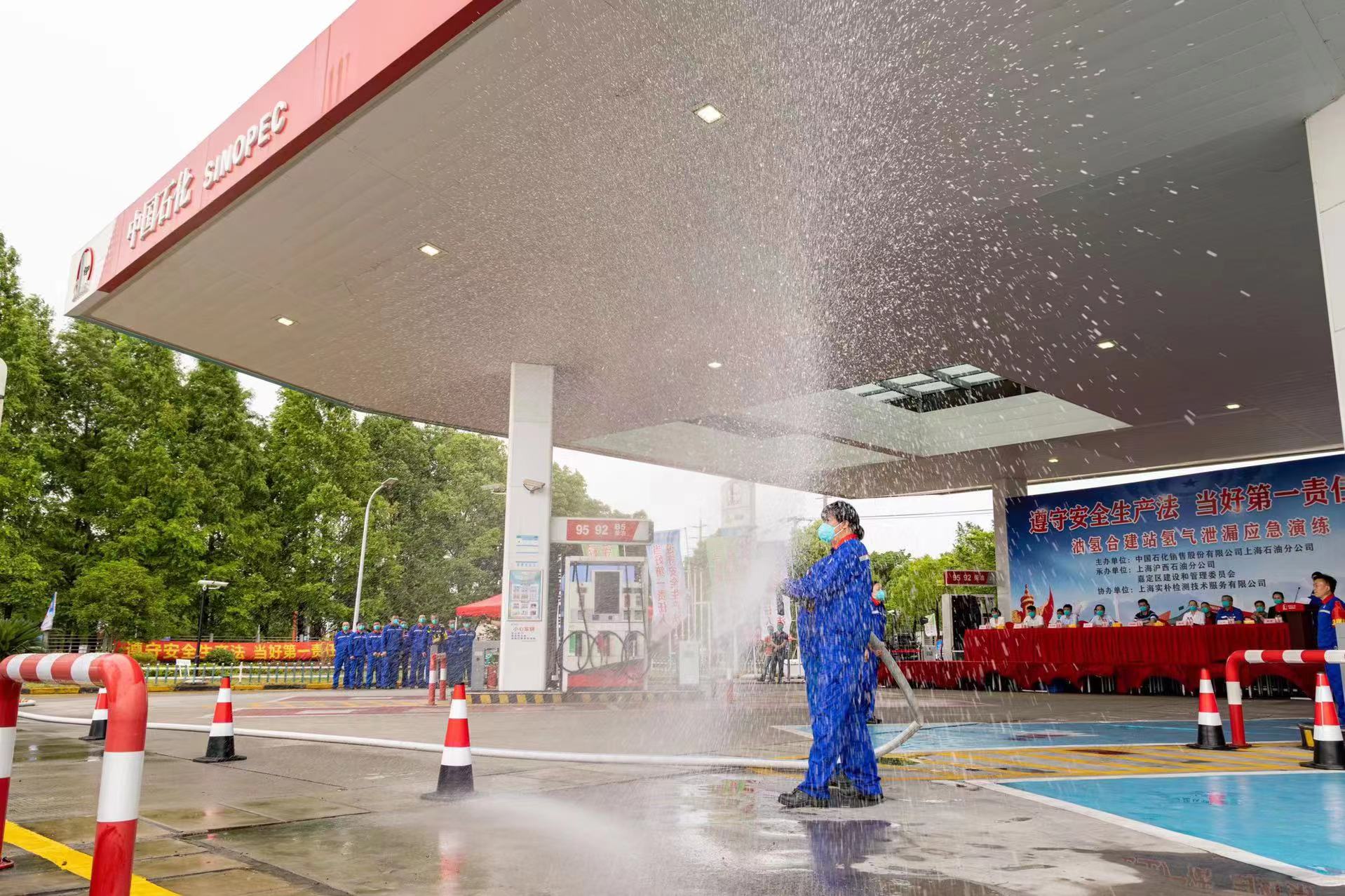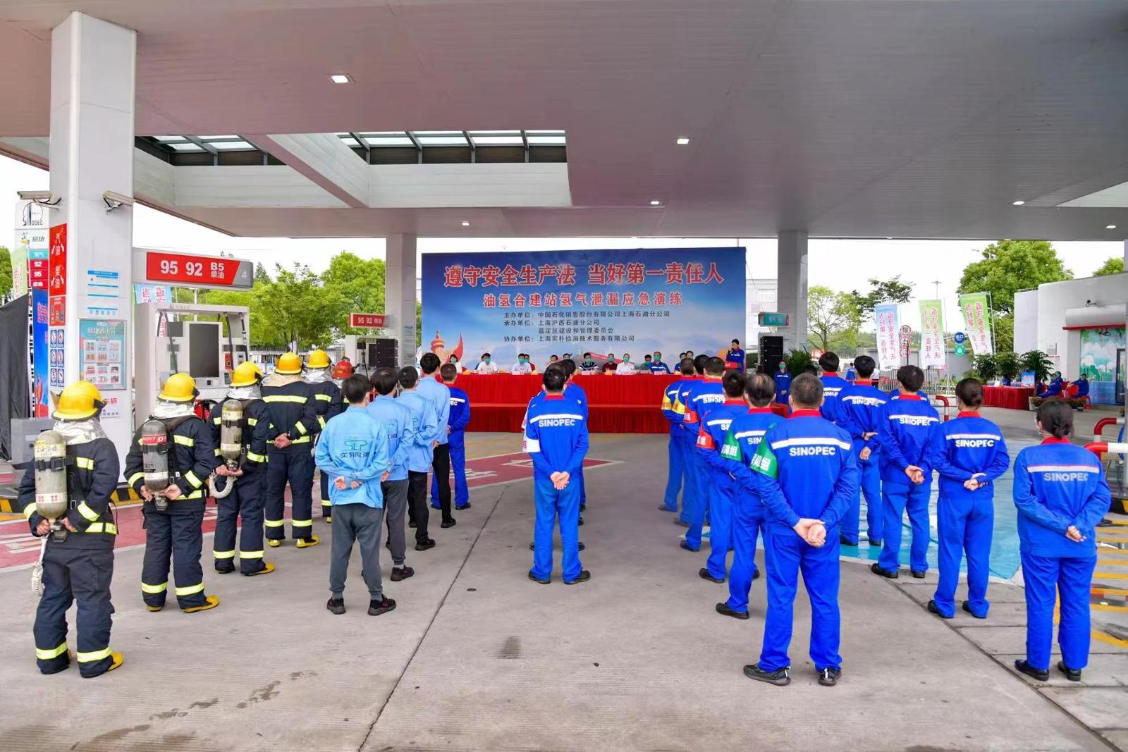 清洁的氢能源开发利用非常迅速,正运营中的油氢合建站储氢罐发生氢气泄漏如何处置?正值全国“安全生产月”之际,中国石化销售上海沪西石油在嘉定区建设和管理委员会、区应急管理局的指导下,联合地方消防救援支队,在西上海发展油氢合建站举行氢气泄漏应急演练,模拟了现场紧急处置。