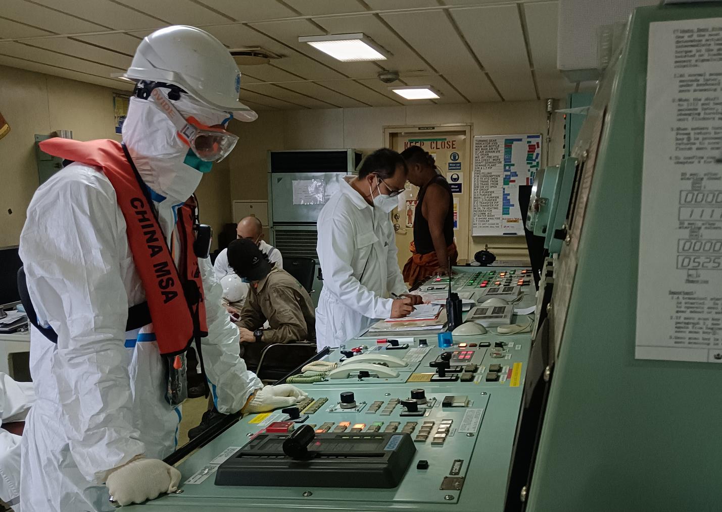 港口国监督检查作为海事监管的一项重要工作,对于确保我国水域交通安全、港口安全、海洋清洁、维护国家权益不受损害具有重要意义。据了解,在当前疫情防控形势下,为进一步加强国际航行船舶的安全监管,上海海事局特成立了由PSC检查专业团队组成的长江上海段“港口国监督检查”工作专班。所有专班人员必须严格落实防疫规定的刚性纪律,按照疫情防控要求穿着好白色防护服、戴好防护罩,“全副武装”才能开展登轮检查,不给疫情防控留下一丝疏漏,全力确保防疫安全。