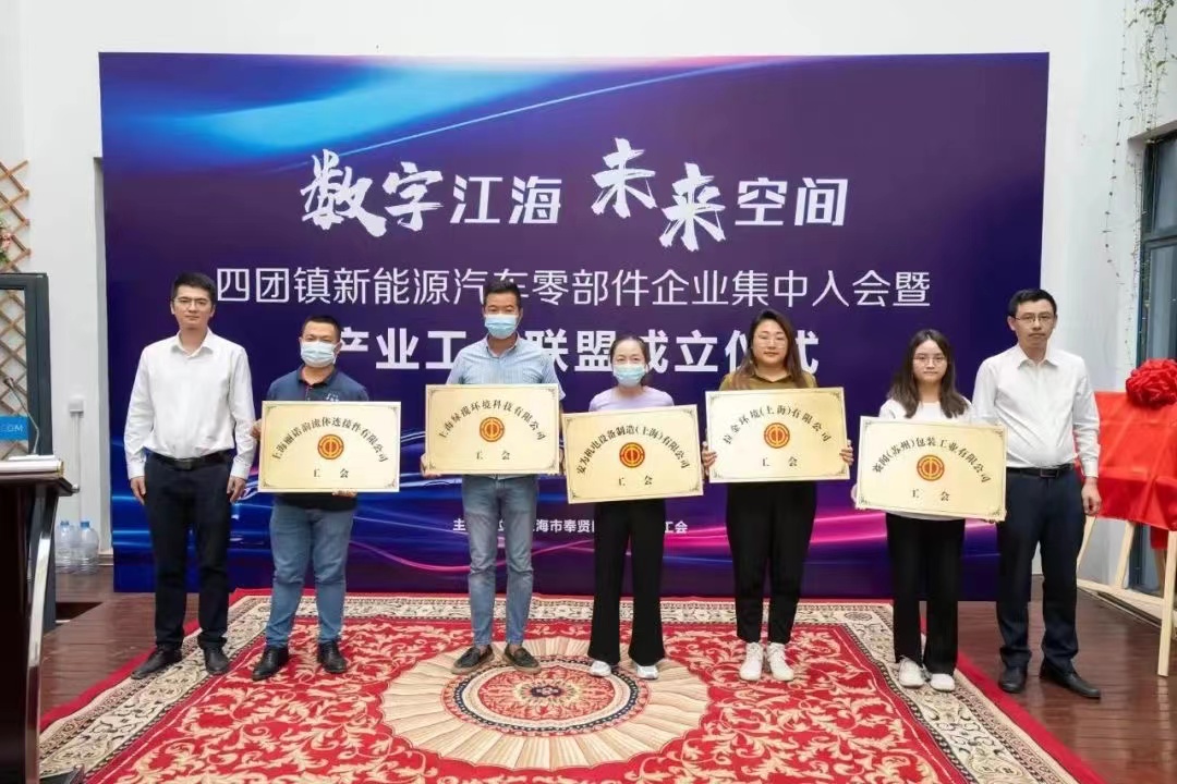 就这样,全市首个新能源汽车零部件产业工会联盟顺理成章地在四团镇成立了,联盟成员囊括7家曾建会的企业、10家当日建会企业等。