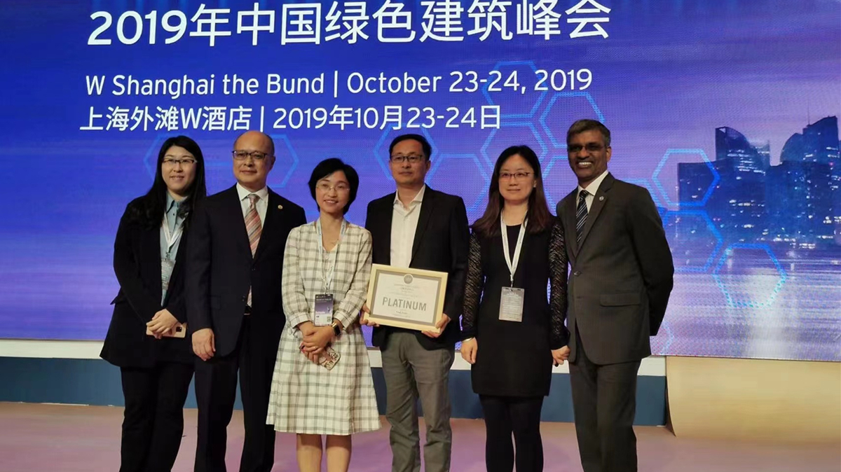 (头图:张颖(左三)在2019年中国绿色建筑峰会颁奖现场。受访对象供图)