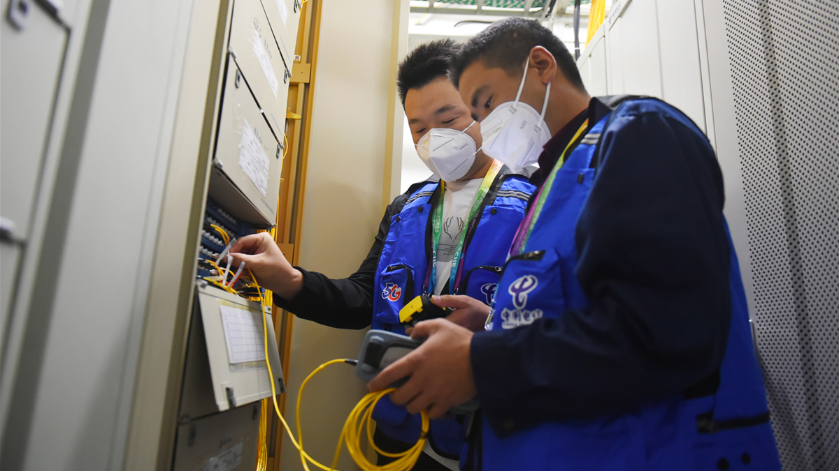 头图:青浦电信局技术人员正在后台测试网速。展翔摄影