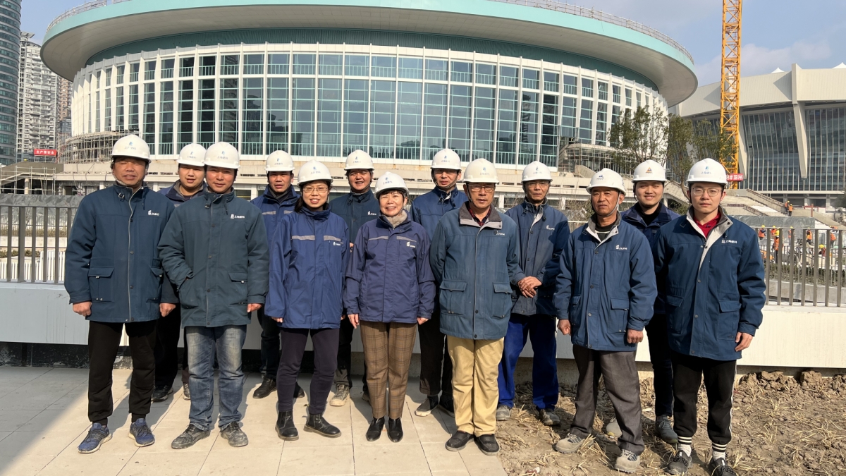 陈祥婷(前排)在成都凤凰山体育中心项目现场。受访对象供图