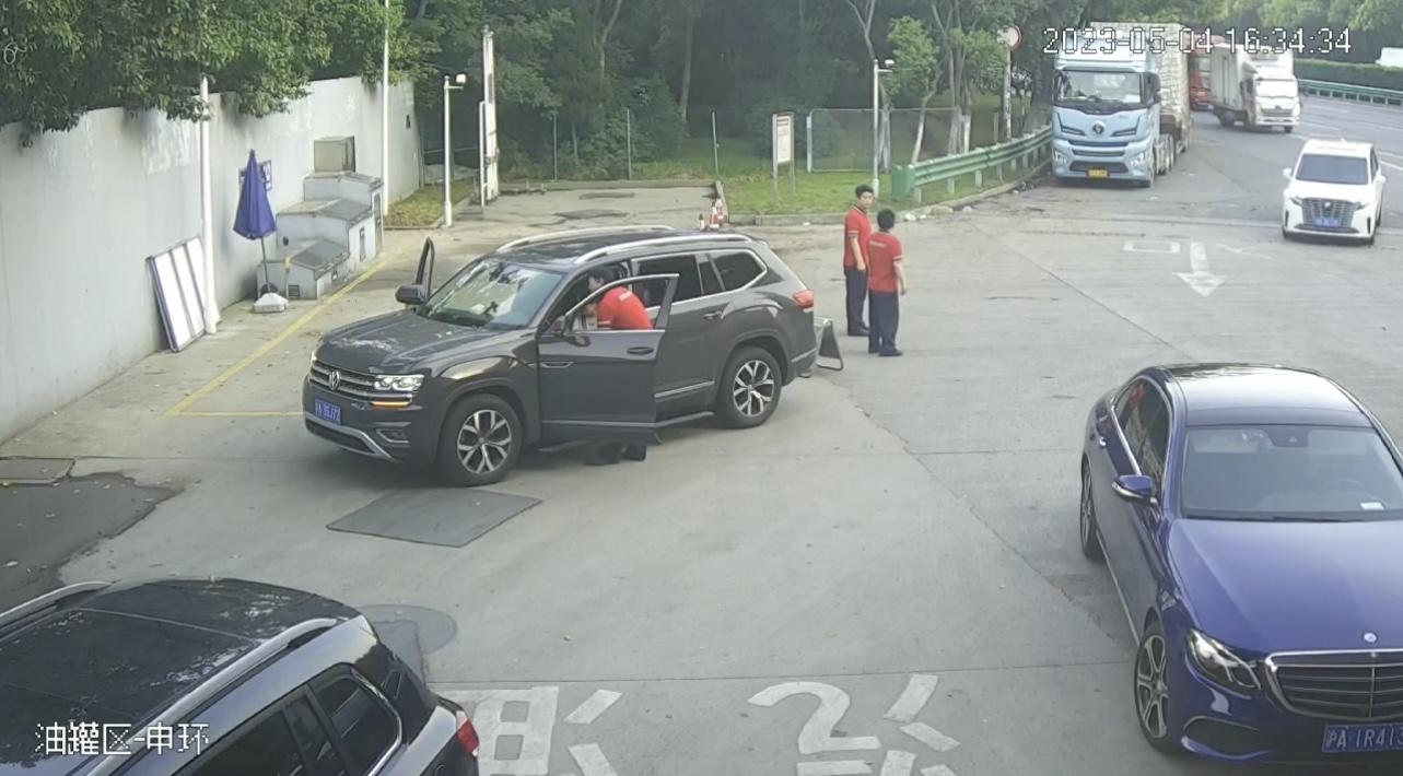 当天16时30分许,加油员徐刚注意到该车辆便上前查看情况,随即发现女司机手指蜷缩,脸色煞白,表情痛苦地在抽泣,徐刚立即唤来其他同事一起实施救助。