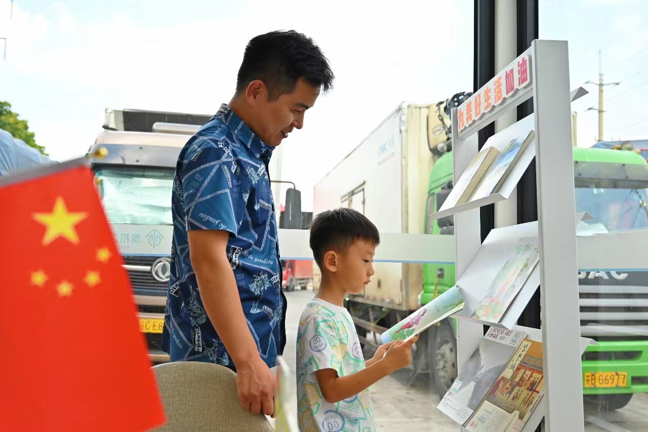 “雨来把手放下来,觉得胳臂发麻发痛,扁鼻子军官用手摸着雨来的脑袋说:这本书谁给你的……”在中国石化泰和路加油站党群服务站,传来了小朋友的琅琅读书声。日前,泰和路加油站联合宝山区杨行镇党群服务中心、宝山区图书馆在加油站党群服务站开展“书香润暑期,阅读伴成长”亲子阅读分享会,为卡车司机家庭提供温馨的亲子活动场所。