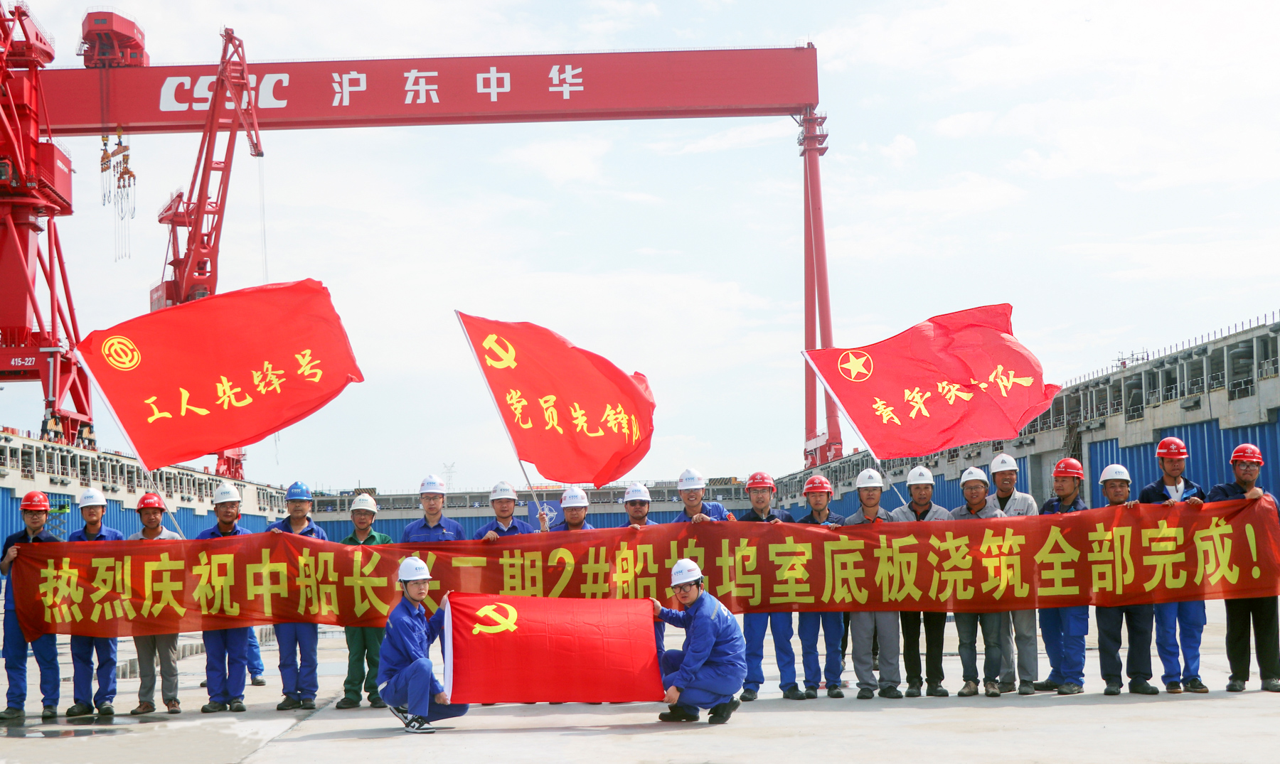 中船长兴造船基地二期工程项目2#船坞是沪东中华造船(集团)有限公司搬迁建设的重要生产设施,通过建设工程项目部2#船坞项目部高效有序的管理推进,目前项目建设已完工,具备使用条件。在浇筑现场,一线职工拍下了这张具有纪念意义的全家福。