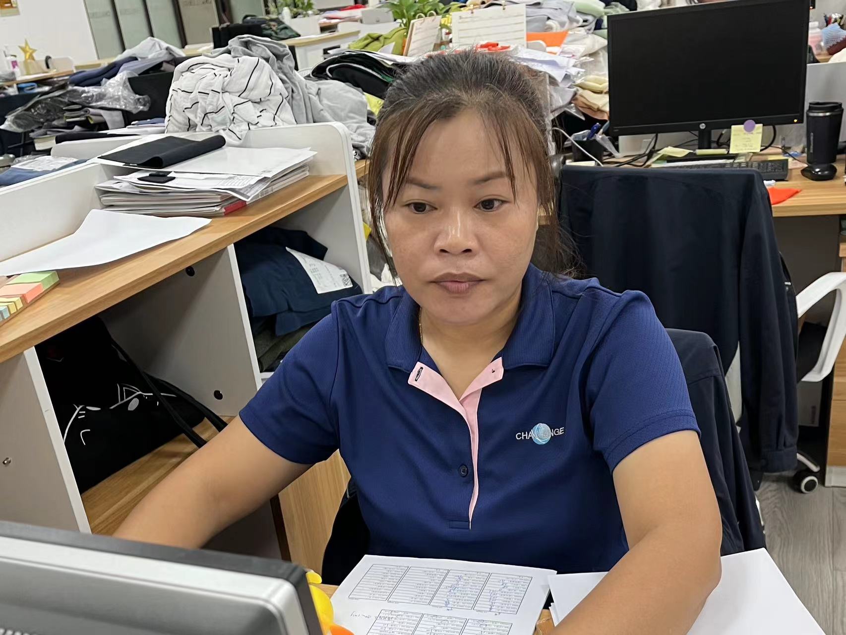 何国英时刻关注新面料在生产中出现的质量问题并致力于寻找解决方案。“新产品在投入生产时随时会出现无法预期的问题。进入量产后,必须寸步不离。”每天一早,她便来到公司,回顾刚过去的一天里生产的所有面料是否有品质问题,以确保产品的及时交货。