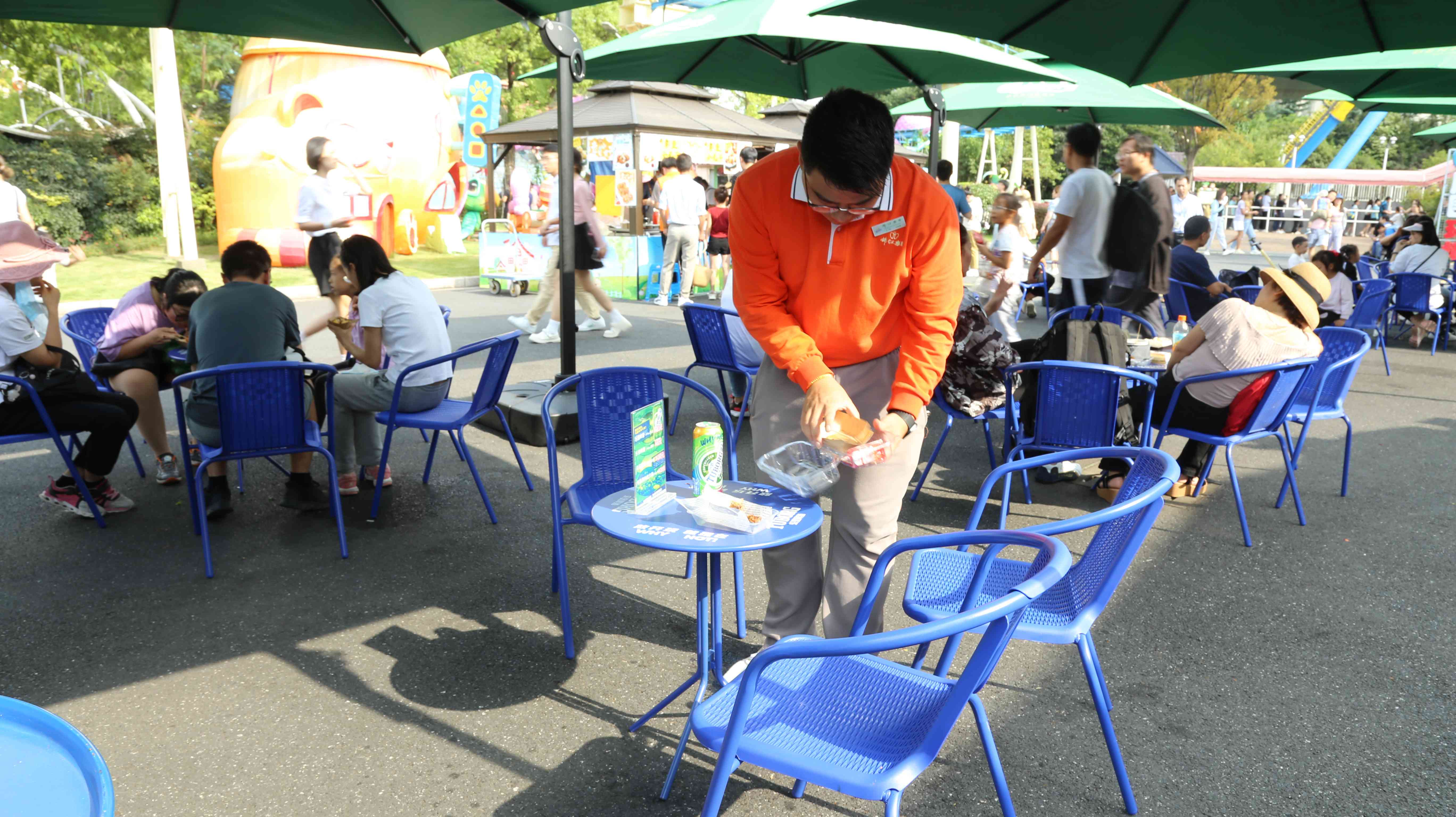 “虽然挺忙的,但还是开心。”与热闹的国庆节“久别重逢”,褚振宇也有一些久违的充实感,这种忙碌带来的充实让他感到快乐。“能看到游客们的笑脸了,大家距离也近了,感觉乐园的人气回来了。”