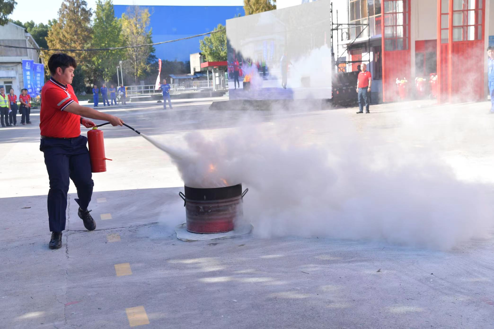 在消防运动会上,只见专职消防员们动作迅捷,着装操作毫不拖泥带水,模拟储油罐泄漏导致局部地趟火事故时,从发现“火情”到消防队员扑灭仅用时10分钟。而在另一个赛场上,女员工们使用灭火毯演练20米油桶灭火比赛中,最快的员工仅用时不到9秒,只见一个个男员工手持5千克干粉灭火器,提起灭火器、拨除插销,站在上风口,朝着着火点根部喷射,动作标准利落。在使用35千克推车式灭火器灭火过程中,一名员工控制灭火器材稳定及开关,另一名员工手持喷射枪向火苗喷射,配合到位,灭火流程缜密规范。