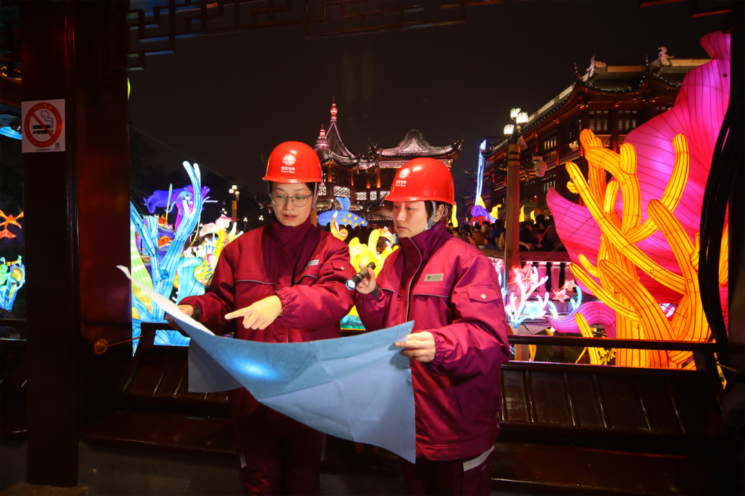 长假里,上海市电力公司一如既往做好供电服务,共完成春节大客流运输、景观灯光、团拜会等4项保电任务。作为豫园灯会的基础性支撑,市区供电公司的客户经理早在灯会开幕前就多次开展安全隐患排查治理,确保设备“健康上岗”,同时联系园方电工,仔细梳理豫园内各类照明灯具、艺术花灯、空调取暖、餐饮厨灶的负荷情况,确保灯会期间安全可靠用电。