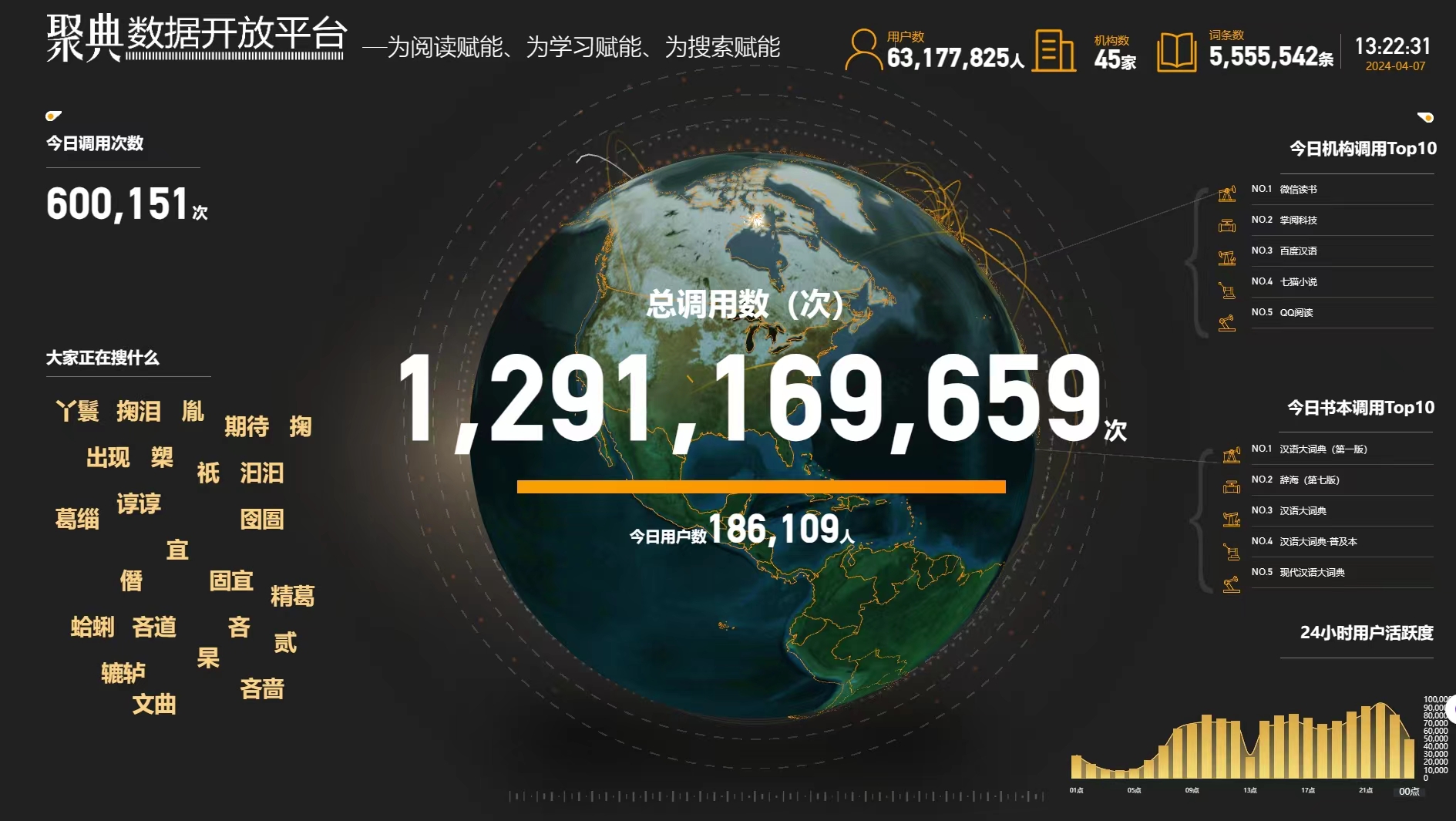 “聚典”于2020年8月13日正式发布上线,通过该平台,出版社实现了与读者精准、及时、全面的广泛链接;通过聚典,满足了读者一站式知识查检需要,具有很强的带动性和辐射力。根据记者得到的最新数据,目前全网已经有6000万用户使用过聚典平台,在微信读书、掌阅、起点读书、得到、澎湃、学习强国等在线阅读和新闻平台上,总调取数已经接近惊人的13亿次。