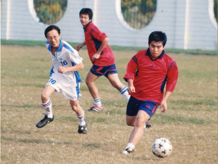 “这张照片是在白龙港厂里的足球场。那年我刚刚进厂,才26岁,非常青涩,厂里组织迎‘五一’职工运动会,我就报名参加了足球比赛。”杨戌雷向记者介绍,“在场上,我通常负责中场,年轻时的球技相当不错,双脚使用均衡,身体素质也过硬,是场上的绝对主力。”