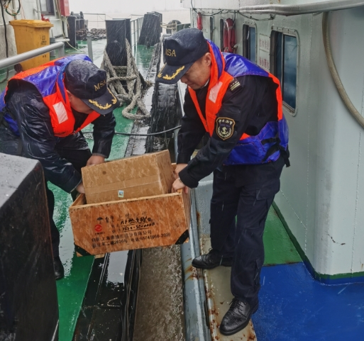 民生问题刻不容缓,崇明海事局工作人员立刻行动,为应对横沙通道内较差的海况,崇明海事局横沙海巡执法大队前期协调抗风等级高的应急值守船舶参与转运工作。当日大风大雨,能见度不良,现场执法人员强化与指挥中心的应急联动,实时分析当时风力与风向、潮水和海浪,对应急运送船舶实施全程电子监控和护航,提醒周围锚泊避风船舶加强值班,避免走锚对该船产生影响。