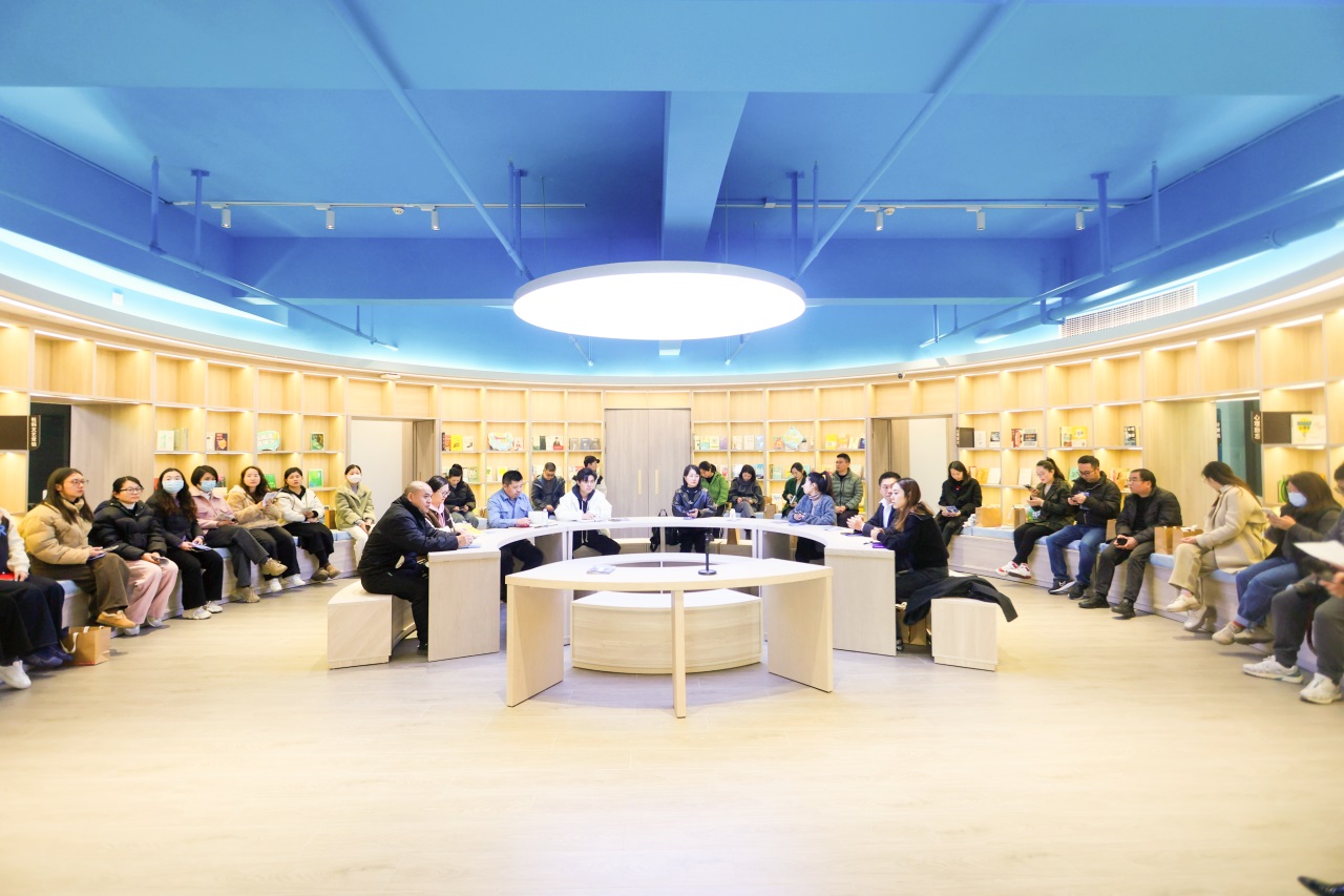 日前,上海聚威新材料股份有限公司职工书屋内,一场别开生面的松江职工书屋示范阅读活动在此举办。书屋设计巧妙地利用了弧形墙面,各街镇(经开区)总工会、相关委局工会职工书屋负责人代表共计50人,聚集在弧形中央桌周围,沉浸在阅读和讨论之中。