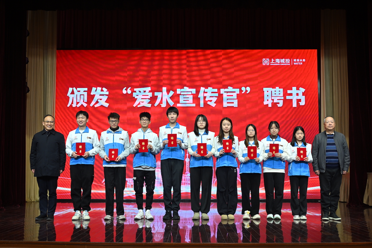 同济大学环境学院的团员青年被授予首批“爱水宣传官”聘书。