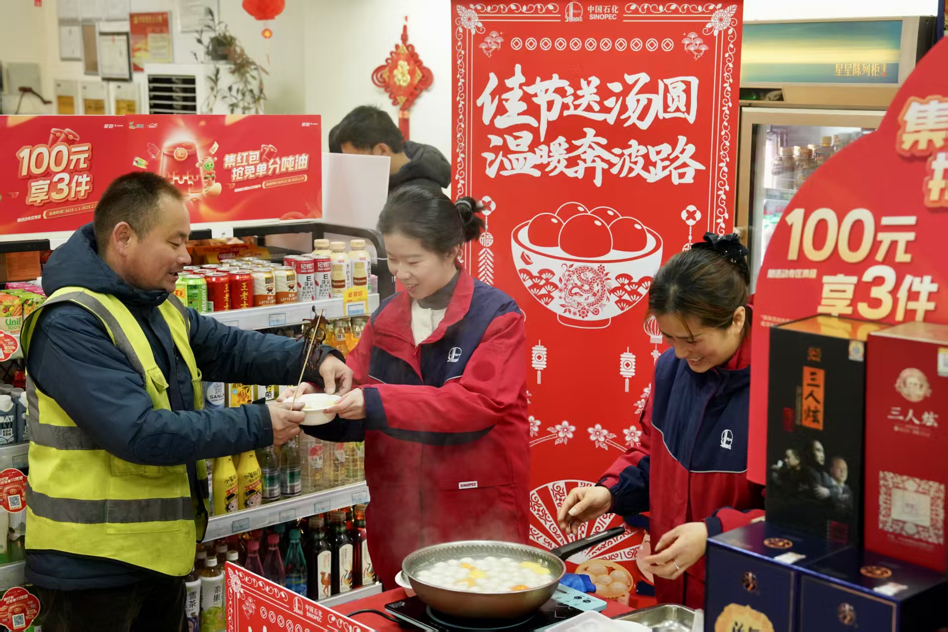 不仅如此,蛇年春节期间,中国石化销售上海石油全力服务奔波路上的客户、车友,为城市提供综合能源供应。除夕以来,参加此次“佳节送汤圆、温暖奔波路”公益活动的43座加油站,已累计服务春运出行车辆加油逾43万车次,向1300余车次提供加注液化天然气服务,向新能源氢燃料车供应氢气1.6吨,为1200余车次提供充换电服务。