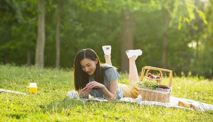 在某互联网公司工作的小萌,每天午休会带着野餐垫直奔公司附近的公园。她将午餐装在便当盒里,在草坪上边晒太阳边吃饭,随后铺开瑜伽垫闭目养神。“晒太阳补钙还能助眠,下午开会时同事说我眼神都变温柔了。”类似的现象在上海屡见不鲜,甚至衍生出“野餐垫社交”——同事们共享一块垫子,闲聊八卦或分享零食。