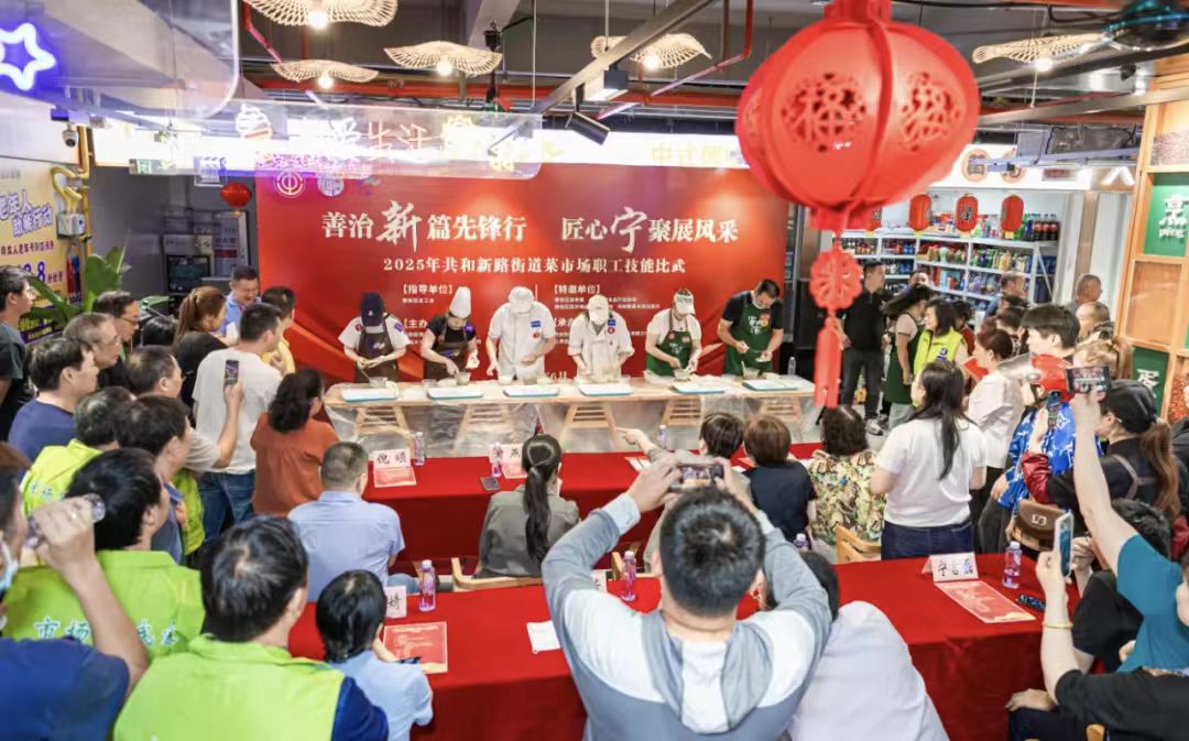 近日,2025年静安区共和新路街道菜市场职工技能比武在宁家黄山市集举办。活动充分展现了辖区菜市场职工爱岗敬业、追求卓越的风貌,有效促进了各市场间经验交流与技能提升。
