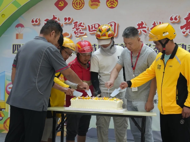 今天,奉贤区四团镇总工会在奉发宝龙开展“7・17”骑士节暨新兴领域人员关爱服务活动,以“十送”品牌为引领,打造“十个一”,为新就业形态劳动者送上十重关爱大礼,让奋斗者们收获满满幸福与温暖。