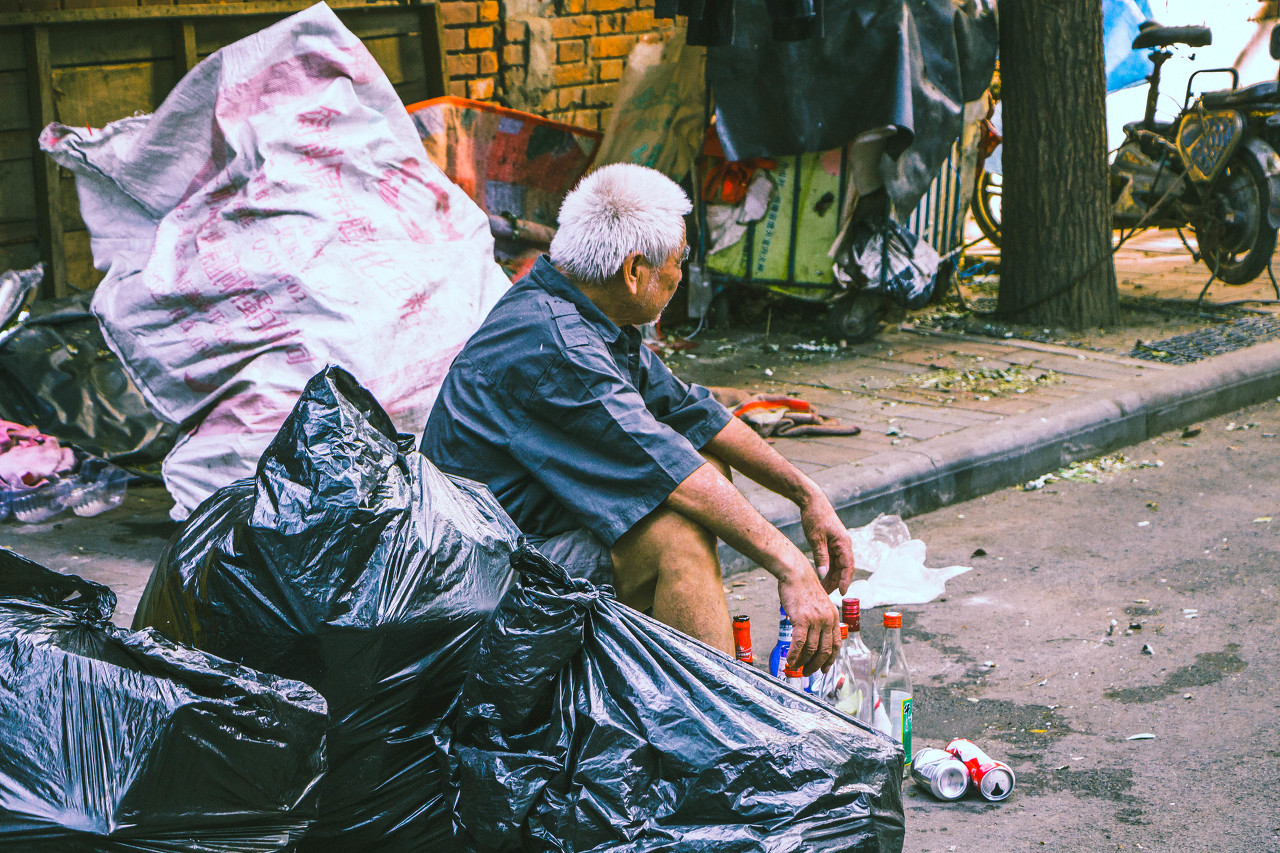 老人困在“垃圾山”