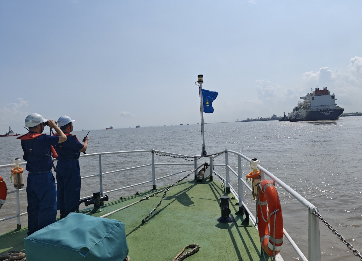 “报告浦东海事局,LNG船‘传奇太阳’轮已靠妥,现场监管正常。”10月5日中午,“传奇太阳”轮满载液化天然气3万余吨在浦东海事局全方位立体护航下安全顺利进港靠泊。