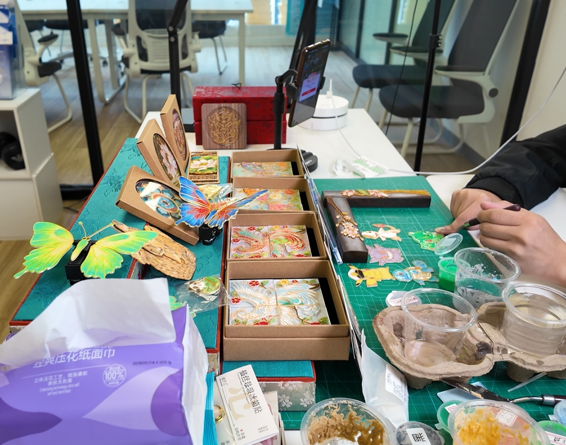 三年来,这条路并不平坦。最初的美食团购项目未能持续,如今的掐丝珐琅事业也仍在艰难中前行。