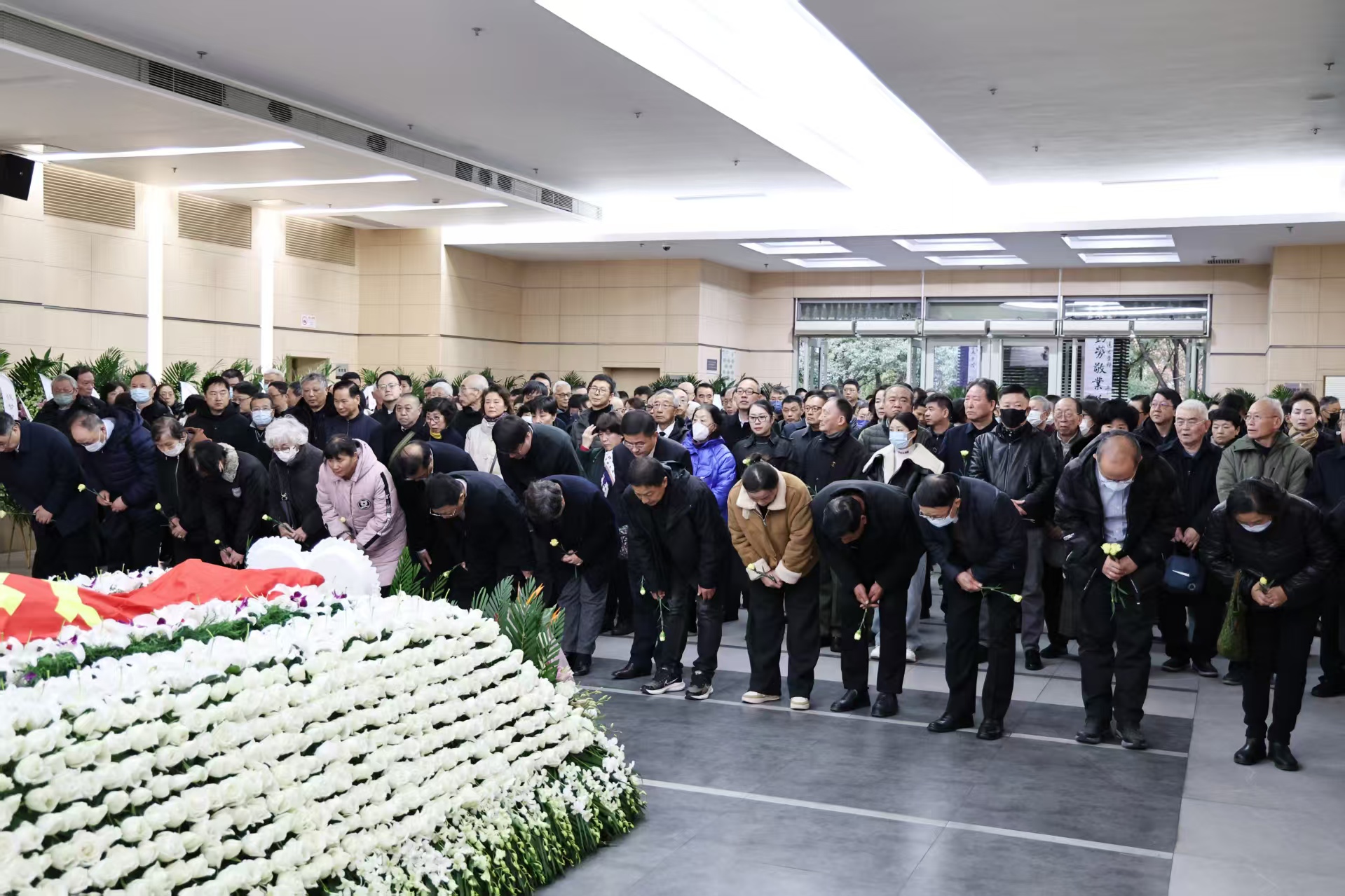 杨怀远同志因病医治无效,于2025年12月11日0时在上海瑞金医院逝世,享年88岁。追悼会现场庄严肃穆,哀乐低回,一幅幅记录其生平事迹的照片映入眼帘,再现了他“天下万物何所求?只求为人民服务到白头”的人生轨迹。