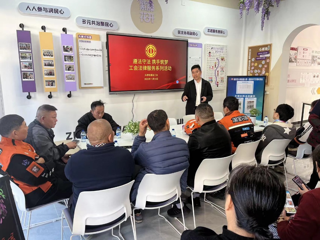 针对新就业形态劳动者就业灵活、劳动关系复杂、维权渠道较窄的特点,街道总工会坚持“精准识别、分类服务”,量身定制专项法律服务。依托紫藤微家、居村等阵地,开展“尊法守法携手筑梦”系列活动,围绕劳动报酬支付、职业安全、工伤保险等重点问题,举办案例分享会并提供“一对一”法律咨询。全年共开展4场专项活动,覆盖新就业形态劳动者200人次,不仅提升了他们的依法维权能力,更让工会的温暖直达群体身边。