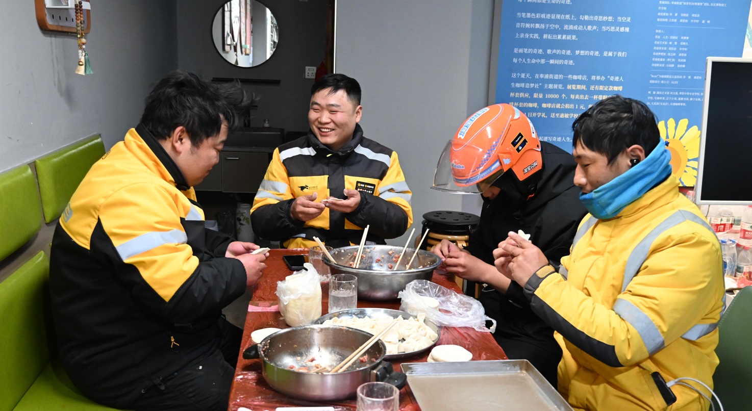 “平时忙着跑单,很少能吃上热乎饭,工会送的饺子太暖心了!”一位外卖小哥捧着装着饺子的饭盒感慨道。