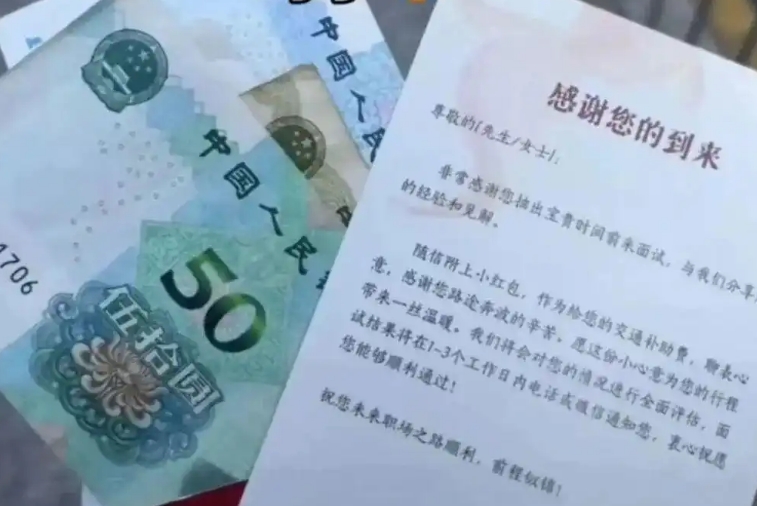 日前,有一求职者发帖称,她来深圳找工作20多天,遇到了“神仙公司”,面试时收到了一封感谢信和随信附赠的66元红包交通补助。她将这段经历发到社交平台,视频迅速获得近5万点赞。网友感叹,有温度的公司能俘获人心,更能凝聚人心,缓解求职者的职场不安。