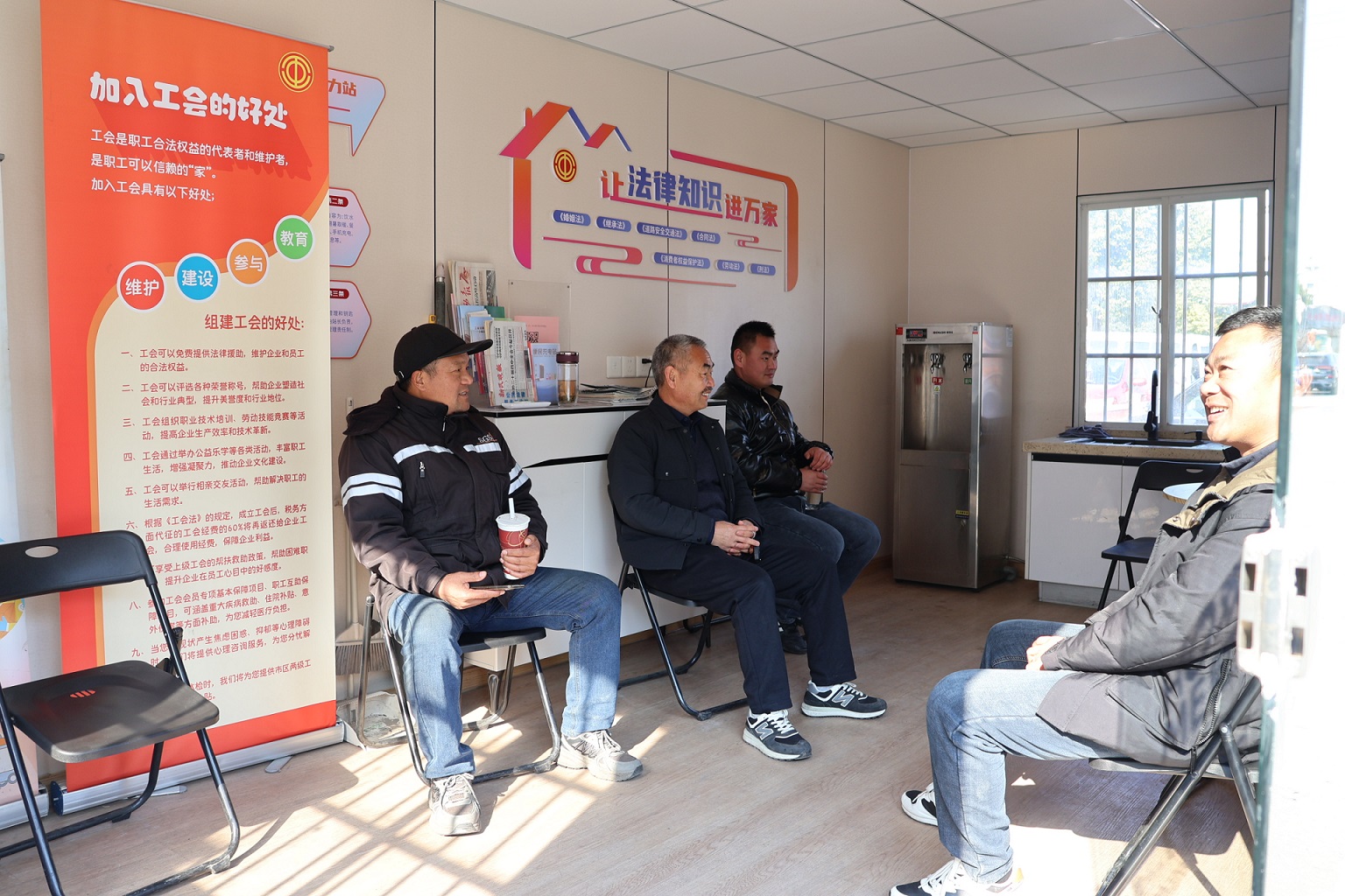 松江区泗泾五金城工会驿站内,司机参加完活动后在内休息。