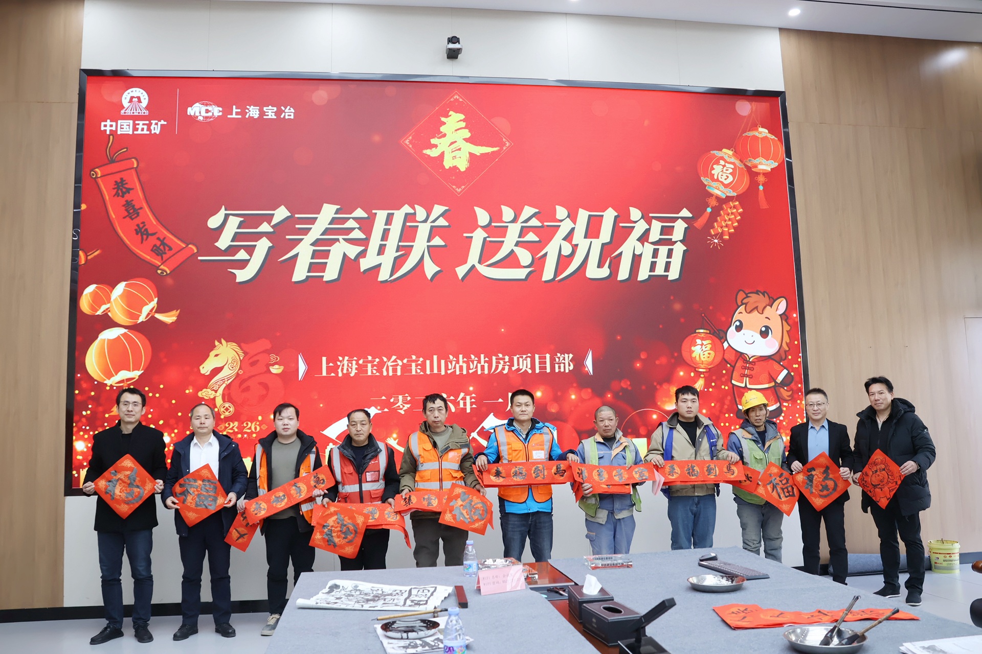 此次活动共送出春联两百余副,以班组为单位发放,覆盖宝冶及项目相关班组,让一线建设者感受到关怀。据了解,上海宝山站是上海北部唯一大型高铁枢纽,建成后将弥补上海北部无高铁枢纽的空白。此外,宝山站是中国第二座双层车站,高架层为沪渝蓉高铁(4台8线),地下层为沪通铁路(4台10线),将实现铁路与城市空间的高效融合。上海宝冶承担上海宝山站站房2标段项目,目前,该项目正全力建设中,预计在春节前完成基坑底板浇筑。