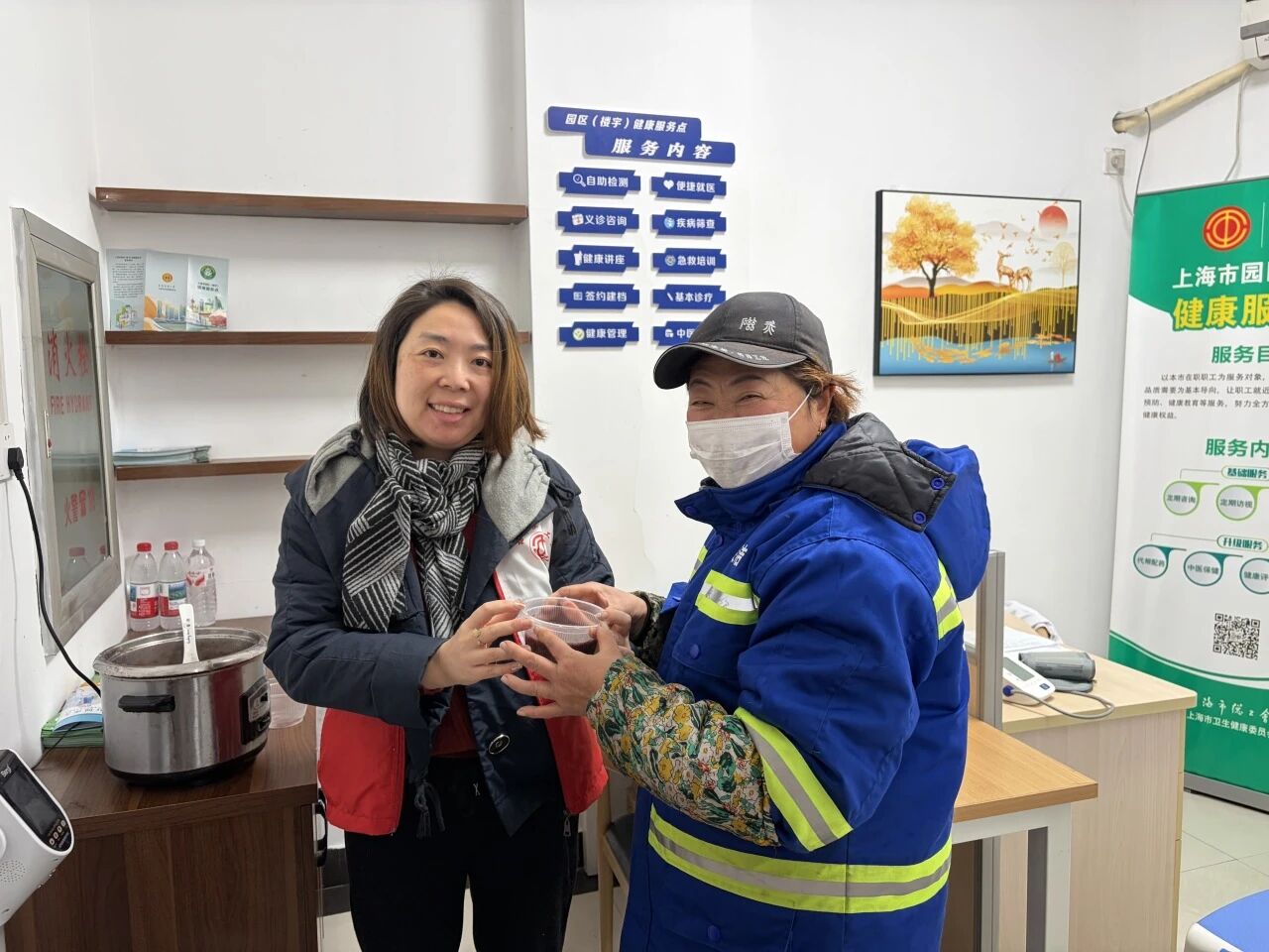 除了香甜的腊八粥,爱心接力站内还备好热气腾腾的红糖姜茶,户外工作者们常年穿梭在寒风中奔波劳碌,工会的暖心举措让他们真切感受到了组织的温暖。