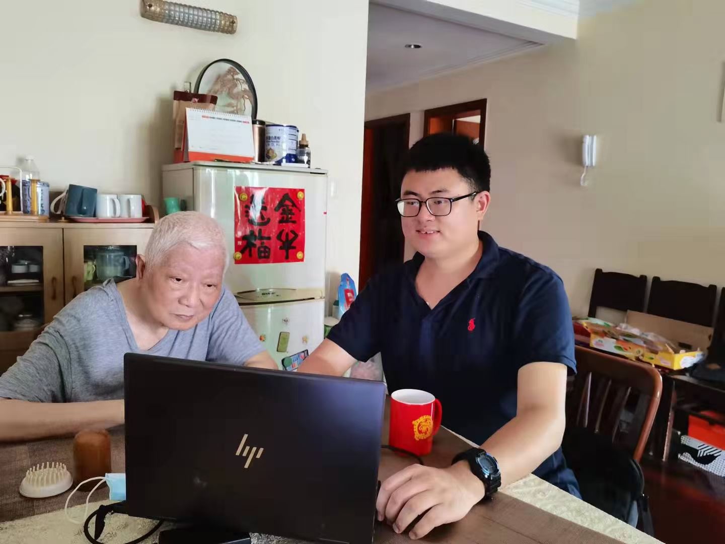 头图:陆轶隽(右)采访工人运动史料委员会成员郑庆声先生。