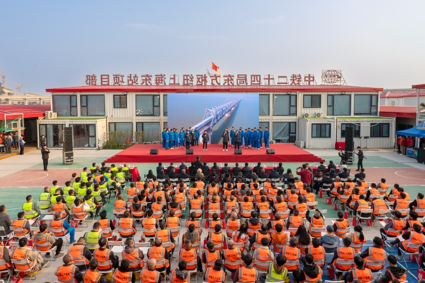 3月19日,由中铁二十四局集团有限公司主办的“幸福二十四 出彩铁建人”文艺进工地活动,在东方枢纽上海东站项目部精彩上演。来自工程建设一线的300余名建设者齐聚一堂,共享这场由职工携手产业工人、监理、辖区派出所带来的文艺演出。